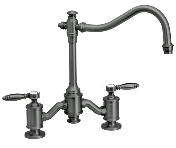 The traditional style Bridge Faucet mounts to the sink or kitchen countertop and has a built-in diverter for connection to optional side spray. Part of the Annapolis Traditional Suite, our Bridge Kitchen Faucet can be matched in finish and style to any Waterstone traditional style accessory. Sink side sprayer, garbage disposal air switch, dishwasher air gap or soap/lotion dispenser. Sink hole covers available to cover that unsightly third hole. Two styles of decorative handle buttons included. This timeless traditional design is available in 31 elegant finishes and has a lifetime functional warranty.
