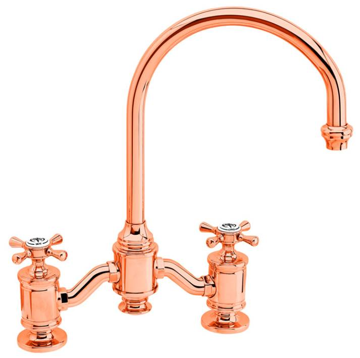 The traditional style Bridge Faucet mounts to the sink or kitchen countertop and has a built-in diverter for connection to optional side spray. Part of the Hampton Traditional Suite, our Bridge Kitchen Faucet can be matched in finish and style to any Waterstone traditional style accessory. Sink side sprayer, garbage disposal air switch, dishwasher air gap or soap/lotion dispenser. Sink hole covers available to cover that unsightly third hole. Two styles of decorative handle buttons included. This timeless traditional design is available in 32 elegant finishes and has a lifetime functional warranty.