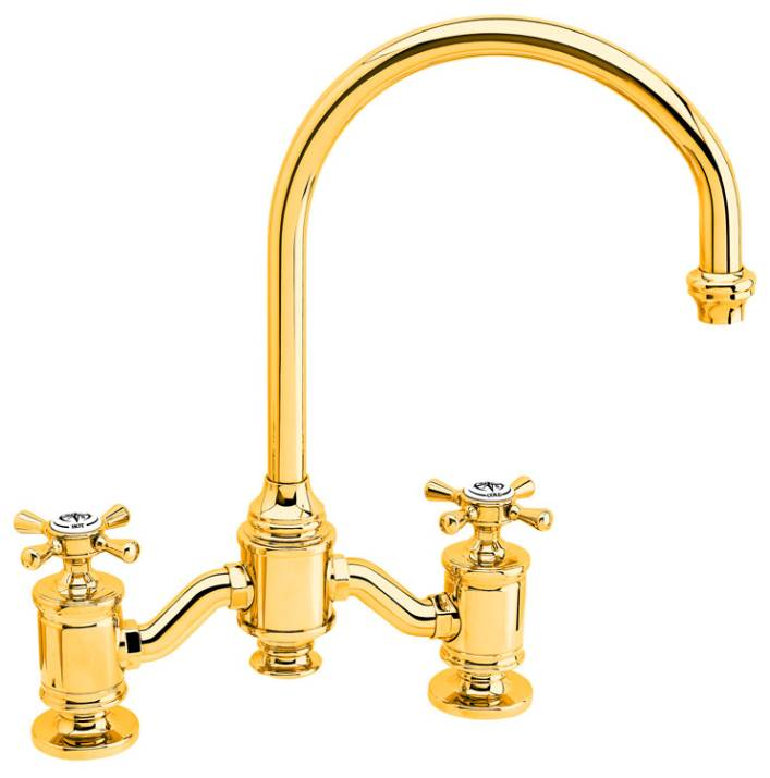 The traditional style Bridge Faucet mounts to the sink or kitchen countertop and has a built-in diverter for connection to optional side spray. Part of the Hampton Traditional Suite, our Bridge Kitchen Faucet can be matched in finish and style to any Waterstone traditional style accessory. Sink side sprayer, garbage disposal air switch, dishwasher air gap or soap/lotion dispenser. Sink hole covers available to cover that unsightly third hole. Two styles of decorative handle buttons included. This timeless traditional design is available in 32 elegant finishes and has a lifetime functional warranty.