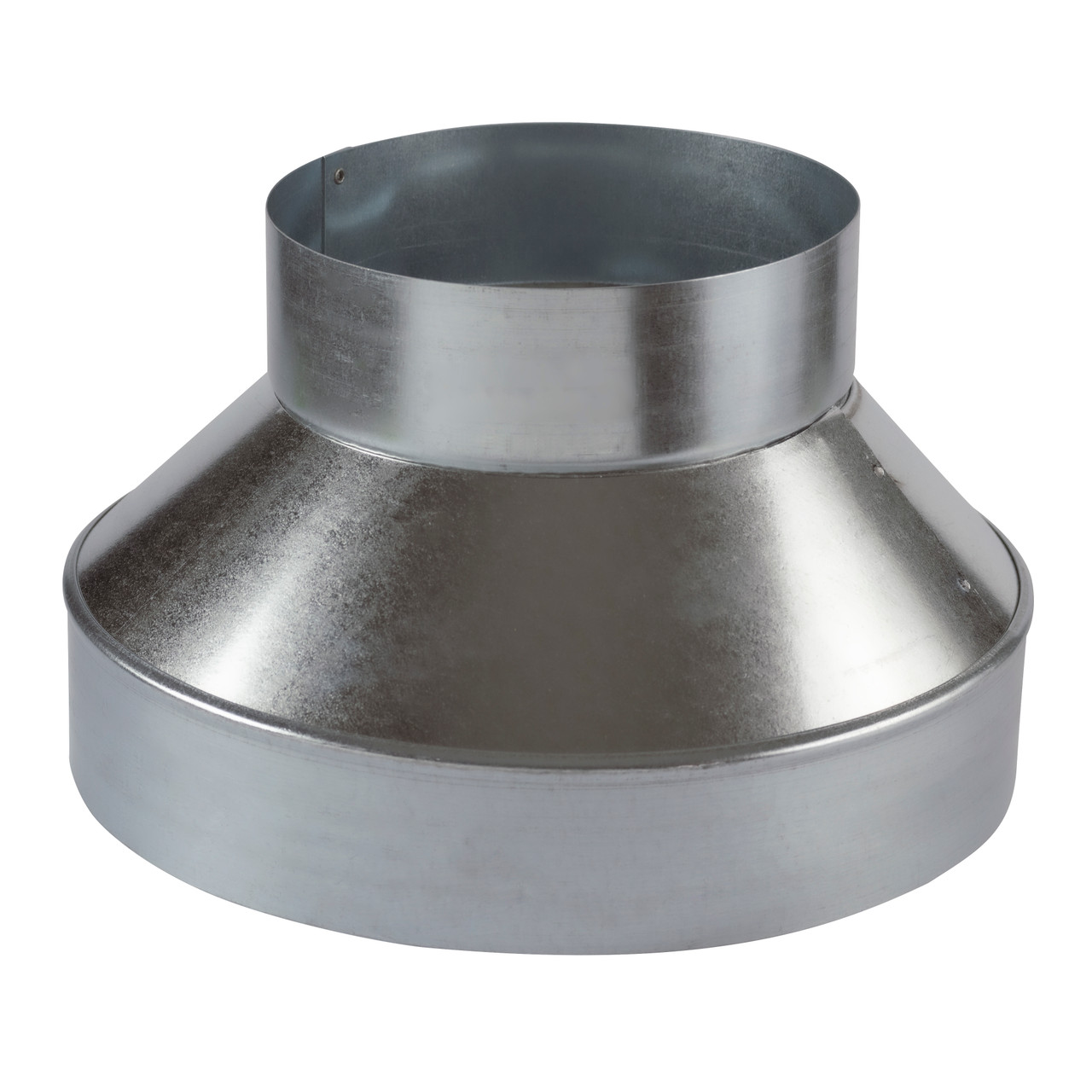 10" to 6" Sheet metal HVAC Duct Reducer for flexible or metal HVAC Ducts and air vents. Our sheet metal reducers increasers are manufactured from the highest quality of galvanized steel. They are the perfect sheet metal fitting for changing duct sizes and utilized for maintaining the best airflow for maximum efficiency in your HVAC duct system. These reducers are made of 26 gauge galvanized sheet metal up to 12" or 24 gauge galvanized sheet metal from 14" to 24". Perfect for use with either flexible duct or rigid sheet metal duct.
